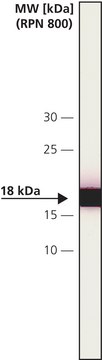 In immunoblotting, the antibody recognizes an epitope located on the β-subunit of calcineurin (18 kDa, also called calcineurin B) and does not cross-react with the α-subunit.