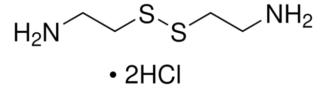 Cystamine dihydrochloride is a useful reagent to derivatize various polymer monoliths for hydrophilic interaction liquid chromatography; as a crosslinking agent in the development of polymer hydrogels; and as a functional group in nanoparticles developed for siRNA and DNA delivery.