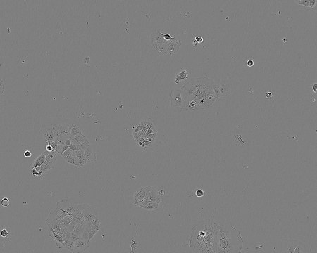 Split sub-confluent cultures (70-80%) 1:3 to 1:6 i.e. seeding at 2-4x10,000 cells/cm2 using 0.25% Trypsinor Trypsin/EDTA; 5% CO2; 37°C. NB: During routine subculture the cells should always be subcultured before they achieve confluence. Cells may show the appearance of circular vacuoles in the cytoplasm. These may increase in frequency as the culture density increases to confluence. To reduce their frequency, media change confluent cultures after 2-3 days if not subcultured. Cells can clump if not separated into a single cell suspension when split.