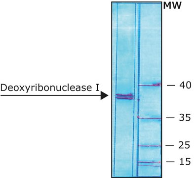 One unit will produce a ΔA260 of 0.001 per min per mL reaction mixture using calf thymus DNA at pH 5.0 and 25°C