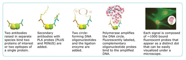 Duolink® proximity ligation assay(PLA®) allows for endogenous detection of protein interactions, post translational modifications, and protein expression levels at the single molecule level in fixed cells and tissue samples.