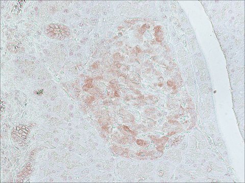 It is also suitable for immunohistochemistry at a working dilution of 1:500 using formalin-fixed, paraffin-embedded sections of rat pancreas and for microarray.