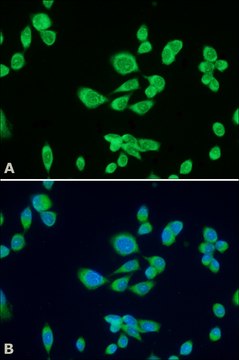 It is also suitable for western blot analysis at a working dilution of 1:1000 using a preparation of stacked Golgi membranes from rat liver, for indirect immunofluorescence at a working dilution of 1:80 using cultured Chinese hamster ovary (CHO) cells and for microarray.