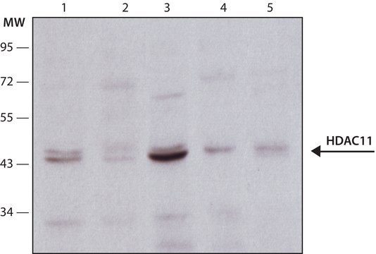 Anti-Histone Deacetylase 11 (HDAC11) antibody produced in rabbit has been used in chromatin immunoprecipitation (ChIP) and western blotting analysis.