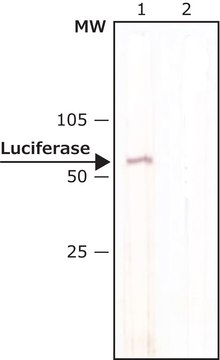 Anti-Luciferase antibody, Mouse monoclonal , (mouse IgG1 isotype) is derived from the LUC-1 hybridoma produced by the fusion of mouse myeloma cells and splenocytes from BALB/c mice immunized with firefly (Photinus pyralis) luciferase. Luciferase, a reporter protein contains two binding pockets, one pocket for ATP and other one for luciferin substrate. Both the pockets are in close proximity to each other.