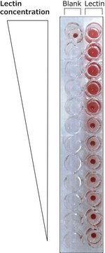 Agglutination activity is expressed in μg/ml and is determined from serial dilutions in phosphate buffered saline, pH 6.8, of a 1 mg/ml solution. This activity is the lowest concentration to agglutinate a 2% suspension of human erythrocytes after 1 hour incubation at 25 °C.
