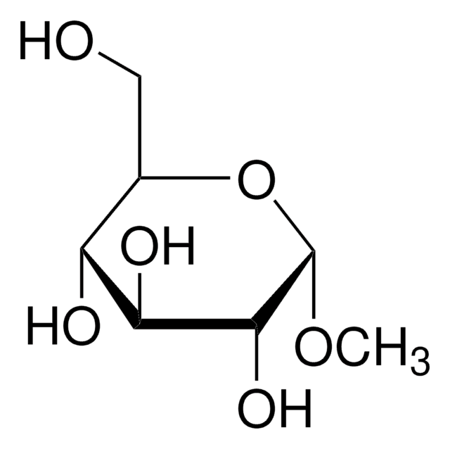 Different concentrations of methyl α-D-glucopyranoside were used to vary echo decay times in a study that assessed the effects of cryoprotection on the structure and activity of p21ras. Methyl α-D-glucopyranoside has also been used in a study to investigate saccharide-mediated protection of chaotropic-induced deactivation of concanavalin A.