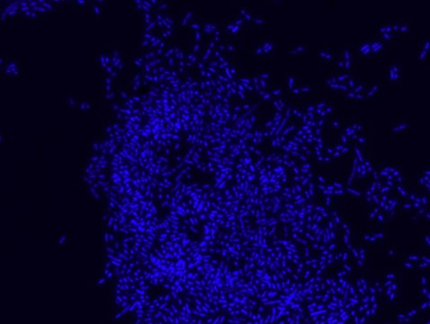FISH technique was successfully used to identify different bacteria with the universal bacterial probe in various samples such as, pure culture (as described in the figure legends), blood cultures,, periapical tooth lesions12, saliva13, biofilms from voice prostheses14, subgingival biofilm15, aortic wall tissue16, buccal epithelial cells, pure culture and cell culture17, intestine tissue embedded in paraffin18, necrotizing fasciitis and pure culture19, colon sections embedded in paraffin20,21, cancer tissues22,23, environmental samples24 and gut of the medicinal leech25. The probe can also be used for combined technique of FISH and Flow cytometric analysis. 9,26,27