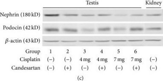 Anti-Podocin antibody produced in rabbit has been used for Western Blotting and immunohistochemistry.