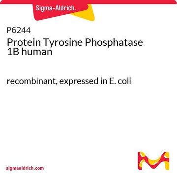 Protein Tyrosine Phosphatase 1B (PTP1B) human has been used in treating cell lysate prior to immunoprecipitation and protein pull-down studies. It has also been used in PTP1B activity assay and also for the evaluation of inhibitors like betulinic acid (BA) and sodium orthovanadate (Na3VO4), and 6-chloro-3-formyl-7-methylchromone (CFM) on PTP1B.