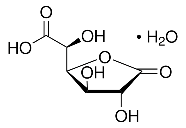 D-Saccharic acid 1,4-lactone monohydrate has been used as a constituent of phosphate buffer to block incidental β-glucuronidase activity in Streptococcus pneumoniae hyaluronan lyase (SpnHL) activity assay. It has also been used as a component of reaction mixture in Iduronidase activity assay and UDP-glucuronosyltransferase 1 (UGT1A1) inhibition assay.