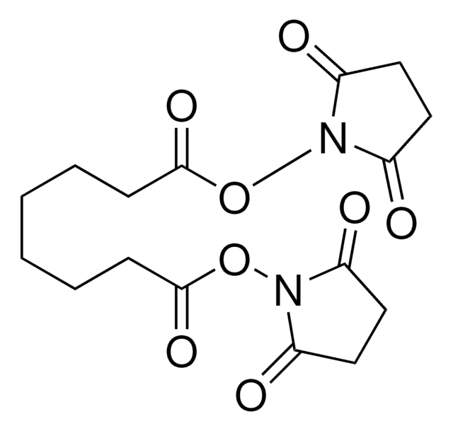 Suberic acid bis(N-hydroxysuccinimide ester) is a homobifunctional cross-linking reagent with amine reactivity. Typically coupled to molecules containing primary amine by amide bond buffered at pH 7.5 (6.5-8.5). Suberic acid bis(N-hydroxysuccinimide ester) incorporates an 8-atom linker.