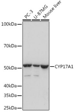 This gene encodes a member of the cytochrome P450 superfamily of enzymes. The cytochrome P450 proteins are monooxygenases which catalyze many reactions involved in drug metabolism and synthesis of cholesterol, steroids and other lipids. This protein localizes to the endoplasmic reticulum. It has both 17alpha-hydroxylase and 17,20-lyase activities and is a key enzyme in the steroidogenic pathway that produces progestins, mineralocorticoids, glucocorticoids, androgens, and estrogens. Mutations in this gene are associated with isolated steroid-17 alpha-hydroxylase deficiency, 17-alpha-hydroxylase/17,20-lyase deficiency, pseudohermaphroditism, and adrenal hyperplasia. [provided by RefSeq, Jul 2008]