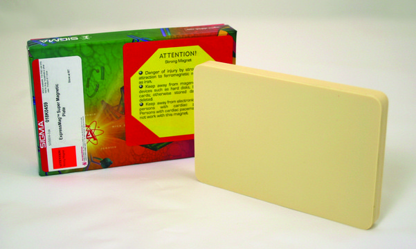 MISSION® ExpressMag® Super Magnetic Plate exerts a magnetic force used to attract magnetic nanoparticles to the surface of cells in culture. This product can be used in conjunction with standard sized well plates, T-25 through T-75 tissue culture flasks, and up to 5 cm dishes.