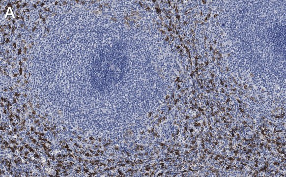 Immunohistochemistry (Paraffin) Analysis: A 1:1,000 dilution from a representative lot detected Heme Oxygenase 1 in human spleen tissue sections.