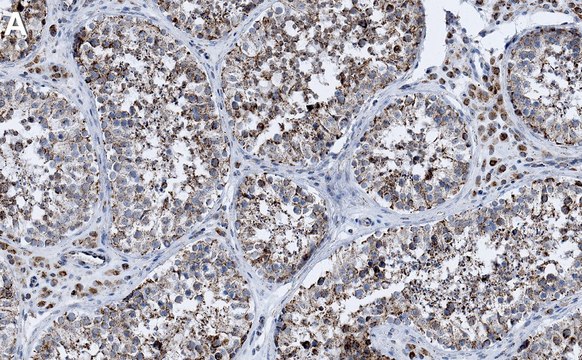 Immunohistochemistry (Paraffin) Analysis: A 1:100 dilution from a representative lot detected G3BP1 in human testis tissue sections.