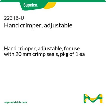 The adjustable hand crimper is ideal if you use varying thickness of septa in your analysis. This product has the ability to be adjusted for changes in septa thickness.
