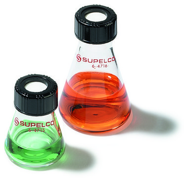 Heat resistant borosilicate glass flasks provide an inert seal when used with a hole cap and PTFE silicone septum (included) or a Mininert valve. Excellent for liquid-liquid extraction of trihalomethanes from drinking water. Also useful for sample collection, solution preparations, derivatization reactions, extractions, and many other applications.