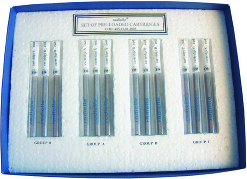 The BTEX Calibration Kit (CS2 Desorption) was designed for the analysis of BTEX in urban environments. The mass of each compound loaded onto each cartridge span the extreme ranges represented in most urban environments. The kit may be used for both routine calibration and quality control. The kit consists of twelve RAD130 Cartridge Adsorbents. Three of which are blanks and nine, divided into three concentration groups, are preloaded with BTEX to simulate 7 day exposures (100,080 minutes). Concentrations are described in the listed table. The values shown are indicative. Actual concentrations are certified for each lot. The cartridges are stable for at least four months when stored at 4°C.