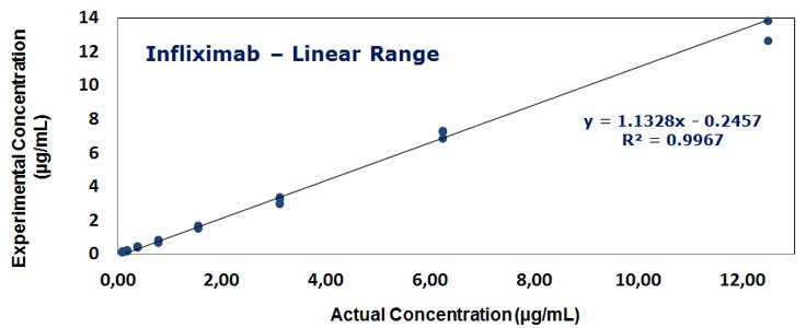 - Universal assay performance was verified with several commercially available biotherapeutic antibodies, including Adalimumab, Infliximab, Rituximab and Cetuximab.