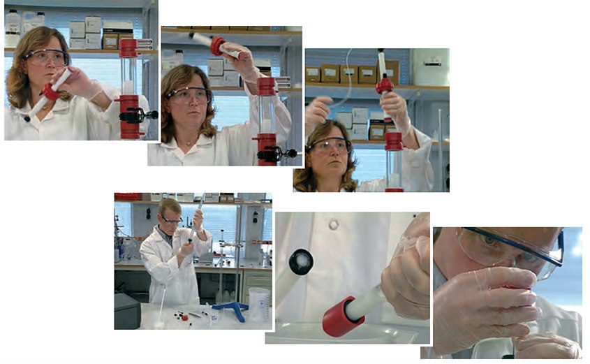 - Insert the adaptor into the column at an angle, ensuring that no air is trapped under the net.