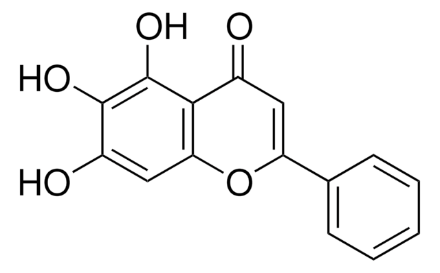 尼泊尔和中日天然药中的黄酮类成分。 黄芩素是黄芩的主要黄酮,可抑制花生四烯酸代谢的12-脂氧合酶(12-LOX)途径,该途径可抑制癌细胞增殖并诱导细胞凋亡。
