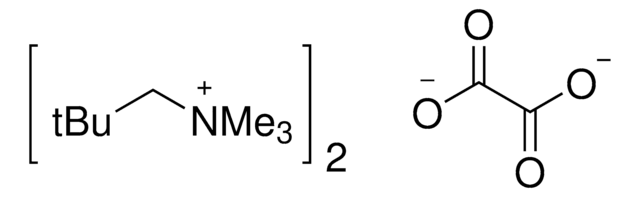 This bis(neopentyltrimethylammonium) oxalate is used in the elution step of the Ritter lab′s new method for deoxyfluorination of phenols. First, an Fmoc-protected ruthenium tyrosine amino acid derivative ([CpRu(Fmoc-tyrosin)]CF3CO2, cat# 902314) is incorporated to a peptide. Later, bis(neopentyltrimethylammonium) oxalate and chloroimidazolium chloride (cat# 904848) facilitate the elution of [18F]fluoride. The final [18F]fluoride radiolabeled polypeptide is useful in positron emission tomography (PET) imaging for the study of various biological applications.