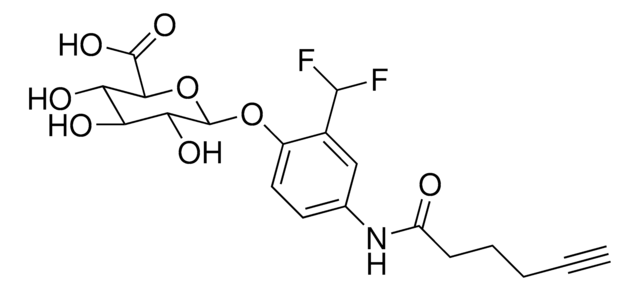 This glucuronic acid activity-based probe (GlcA-ABP) is a glucuronidated metabolite mimic that provides in situ detection of active β-glucuronidases in the gut microbiome. The probe reacts with nucleophilic residues of the target, and the alkyne tag enables subsequent bioorthogonal tagging via click chemistry for enrichment (i.e. biotin tags) or imaging and cell sorting (i.e. fluorescent tags). With GlcA-ABP, Whidbey, et al were able to pair the activity-based probe (ABP) with fluorescence-activated cell sorting (FACS; ABP-FACS) to identify β-glucuronidase-active taxa in the gut microbiota.