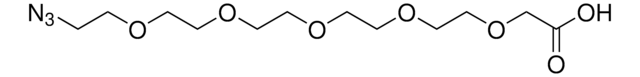 This heterobifunctional, PEGylated crosslinker 17-Azido-3,6,9,12,15-pentaoxaheptadecanoic acid features a carboxyl group at one end and azide at the other. The hydrophillic PEG linker facilitates solubility in biological applications. This azido-PEG5-acid linker can be used for bioconjugation or as a building block for synthesis of small molecules, conjugates of small molecules and/or biomolecules, or other tool compounds for chemical biology and medicinal chemistry that require ligation. Examples of applications include its synthetic incorporation into antibody-drug conjugates or proteolysis-targeting chimeras (PROTAC® molecules) for targeted protein degradation.