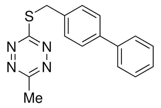 3-(([1,1′-Biphenyl]-4-ylmethyl)thio)-6-methyl-1,2,4,5-tetrazine (b-Tz) is a minimal tetrazine derivative capable of undergoing [4+2] Diels-Alder cycloaddition reactions with strained alkenes, which makes it highly useful in bioorthogonal labeling and cell detection applications. Tetrazines are often incorporated into chemical probes or other small-molecule tools using linkers that may impact physicochemical properties or the performance of the resulting conjugate product. Here, Lambert et al demonstrated the linker-free incorporation of b-Tz via silver-mediated Liebeskind-Srogl cross-coupling with a variety of aryl and heteroaryl boronic acids. This ″minimal″ tetrazine approach will facilitate the introduction of tetrazine into diverse complex molecules and improved probes for live-cell imaging and in vivo chemistry.
