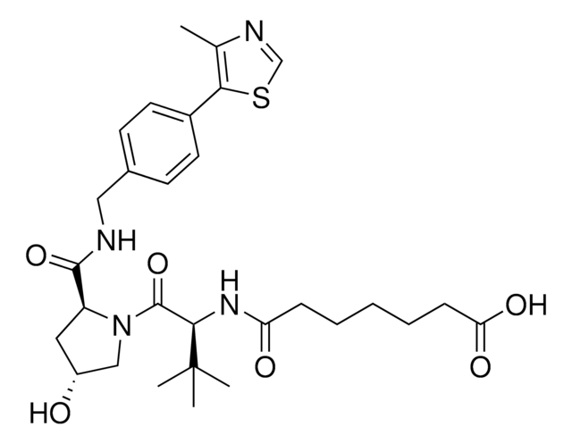 VH 032 amide-alkyl C5-acid is a functionalized von-Hippel-Lindau (VHL) ligand with a terminal carboxyl group, allowing rapid conjugation of amine containing linkers. A basic building block for development of a protein degrader library.