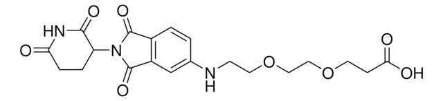 Thalidomide-NH-PEG2-COOH is a functionalized von-Hippel-Lindau (VHL) ligand with a terminal hydroxyl group. Allows rapid conjugation with many linkers containing active leaving groups. A basic building block for development of a protein degrader library.