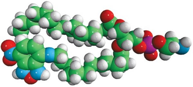 N-(7-nitrobenz-2-oxa-1,3-diazol-4-yl) phosphoethanolamine (NBD PE) is a fluorescent probe localized at the membrane interface. It possess fluorescent NBD label attached to the headgroup of phosphatidylethanolamine (PE). PE is the parent compound for phosphatidylcholine and phosphatidylethanolamine synthesis and is mostly enriched in brain.