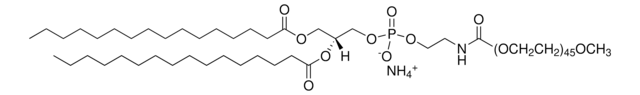 16:0 PEG2000 PE或1,2-二棕榈酰基-sn-甘油-3-磷酸乙醇胺-N-[甲氧基(聚乙二醇)-2000]已用于脂质体制备。它还被用于制备三肽精氨酸-甘氨酸-天冬氨酸磁脂质体(RGD-MLPs)和聚乙二醇(PEG)-MLPs。