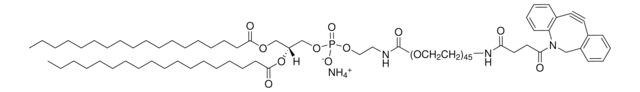 DSPE-PEG(2000)-DBCO已用于通过改进的薄膜水合技术制备肽偶联的荧光纳米颗粒。它也已用于介晶分子的同源锚定。