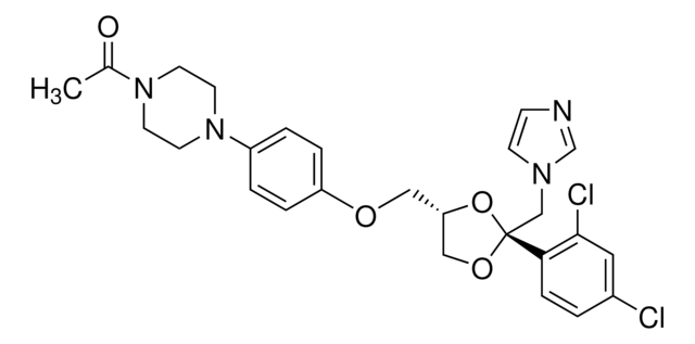 Ketoconazole, sold under trade names such as Nizoral®, Sebizole, Ketomed, and Fungarest, is an antifungal drug used in the treatment and prevention of superficial and systemic fungal infections. Ketoconazole is routinely assigned therapeutic drug monitoring due to its high toxicity and narrow therapeutic range. This Certified Spiking Solution® is suitable as starting material for calibrators, controls, or linearity standards for therapeutic drug monitoring or clinical and diagnostic testing of ketoconazole in patient blood, serum, or plasma samples by HPLC or LC-MS/MS.