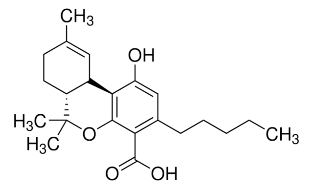 Delta9-Tetrahydrocannabinolic acid B (THCA-B), is a natural cannabinoid and one of two isomers of THCA. This certified Snap-N-Spike® solution is suitable for THCA-B testing methods by GC/MS, LC/MS or HPLC for applications in clinical toxicology, testing of Cannabis potency or impurity profiling, pharmaceutical research, forensic analysis, and urine drug testing.