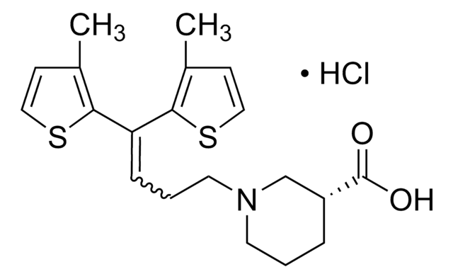 Tiagabine, marketed as the antiepileptic drug Gabitril®, is used in the treatment of anxiety disorders and neuropathic pain including fibromyalgia. The drug also has been approved by US FDA as an adjunctive treatment for partial seizures in ages 12 and up. This Certified Spiking Solution® is suitable for use in LC/MS or GC/MS applications including forensic analysis, clinical toxicology, prescription monitoring, urine drug testing or pharmaceutical research.