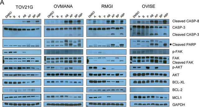 Targeted inhibition of FAK, PYK2 and BCL-XL synergistically enhances apoptosis in ovarian clear cell carcinoma cell lines.