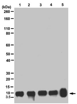 Western Blot Analysis: 0.1 µg/ml of this antibody detected histone H4 in 10 µg of HeLa cell lysate.
