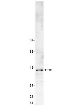 Positive Antigen Control: Catalog #12-305, 3T3/A31 lysate. Add 2.5 μL of 2-mercapto-ethanol/100 μL of lysate and boil for 5 minutes to reduce the preparation. Load 20 μg of reduced lysate per lane for minigels.