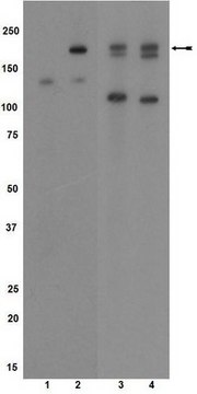 This lot detected VEGFR2 phosphorylated on Tyr1054 at a 1:1,000 dilution in PAE cells transfected with CSF/KDR and treated with 40ng/mL CSF-1 for 15 min. Cell lysate resolved via SDS-PAGE and transferred to PVDF (Immobilon-P).