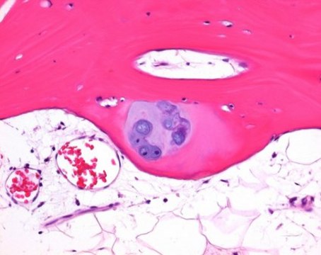 Decalcification is necessary for optical microscopic examinations of hard tissue in routine histological procedures. For the decalcification of sensitive, calcium-containing tissues, such as iliac crest biopsies, OSTEOSOFT® (Product number 1.01728) can be used. Its formulation is based on EDTA. Its pendant, OSTEOMOLL®, can be used for the decalcification of hard tissue such as teeth and bone as its formulation is based on formaldehyde and hydrochloric acid. The amount of OSTEOMOLL® needed is dependent upon on the size, type and thickness of the material. A 30 ml portion of OSTEOMOLL®, which should completely cover the material, can be used twice if the solution is still clear and not contaminated.