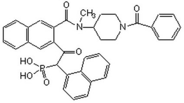 组织蛋白酶G的有效,选择性,可逆,竞争性非肽抑制剂[IC50=53 nM,Ki=63 nM]。弱抑制胰凝乳蛋白酶(Ki = 1.5 µM),弱抑制凝血酶,Xa因子,IXa因子,纤溶酶,胰蛋白酶,类胰蛋白酶,蛋白酶3和人白细胞弹性蛋白酶(IC50 >100 µM)。