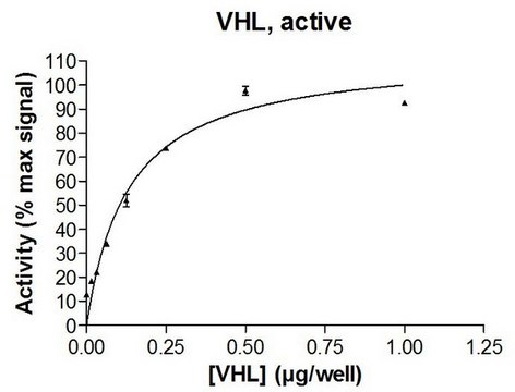 The primary function of the von-Hippel Lindau tumor suppressor (VHL) complex is to regulate HIF (hypoxia inducible factor) activity by targeting the hydroxylated HIF-1α subunit for ubiquitination and rapid proteasomal degradation during normoxia under normoxic conditions. It therefore plays an important role in the regulation of hypoxia-inducible genes such as the vascular endothelial growth factor (VEGF) and glucose transport-1 (Glut-1). Mutations in VHL are associated with the inherited von Hippel-Lindau (VHL) cancer syndrome and numerous forms of renal cell carcinoma.
