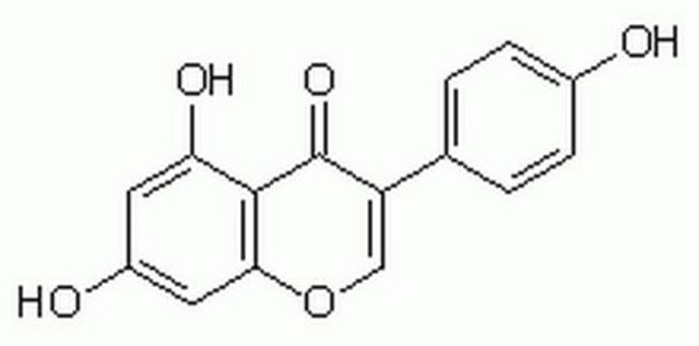 Genistein, Soybean, A cell-permeable, reversible, substrate competitive inhibitor of protein tyrosine kinases, including autophosphorylation of epidermal growth factor receptor kinase (IC50 = 2.6 µM).