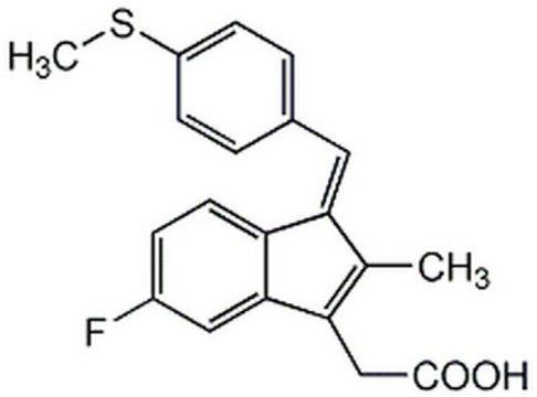 An active metabolite of the non-steroidal anti-inflammatory drug Sulindac (Cat. No. 574100). Inhibits Ras signaling. Strongly inhibits Ras-induced malignant transformation and Ras/Raf-dependent transactivation. Also decreases the Ras-induced activation of c-Raf-1 kinase. Inhibits cell growth and induces apoptosis in a time-and dose-dependent manner. Selectively inhibits prostaglandin H synthase-1 (PGHS-1; COX-1; ID50 = 0.5 µM) relative to prostaglandin H synthase-2 (PGHS-2; COX-2; ID50 = 14 µM). Reduces Aβ42 production independently of COX inhibition.