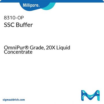 General Composition: Each liter of concentrate makes 20 L of 1X SSC buffer (1X = 0.150 M Sodium Chloride, 0.015 M Sodium Citrate). Molecular Biology grade.