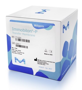 Immobilon®-P膜,PVDF,0.45 m, 8.5 cm x 10 m卷, 0.45 um ( 0.45 micron filter ) pore size Hydrophobic immobilon-P PVDF Transfer Membrane for western blotting using Chemiluminescence, Chromogenic or Radioactive detection methods. Comes in an 8.5 cm x 10 m roll.
