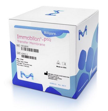 Immobilon®-PSQ膜,PVDF,0.2 m,8.5 cm x 10 m卷, 0.2 um filter ( 0.2 micron ) pore size Hydrophobic PVDF Transfer Membrane for western blotting using Chemiluminescence, Chromogenic or Radioactive detection methods. Comes in an 8.5 cm x 10 m roll.
